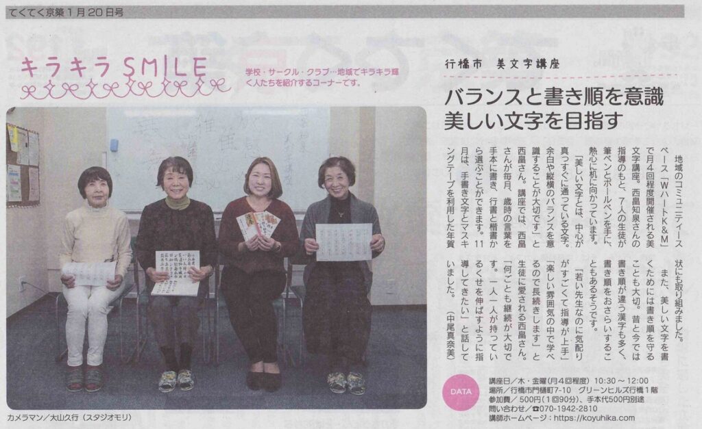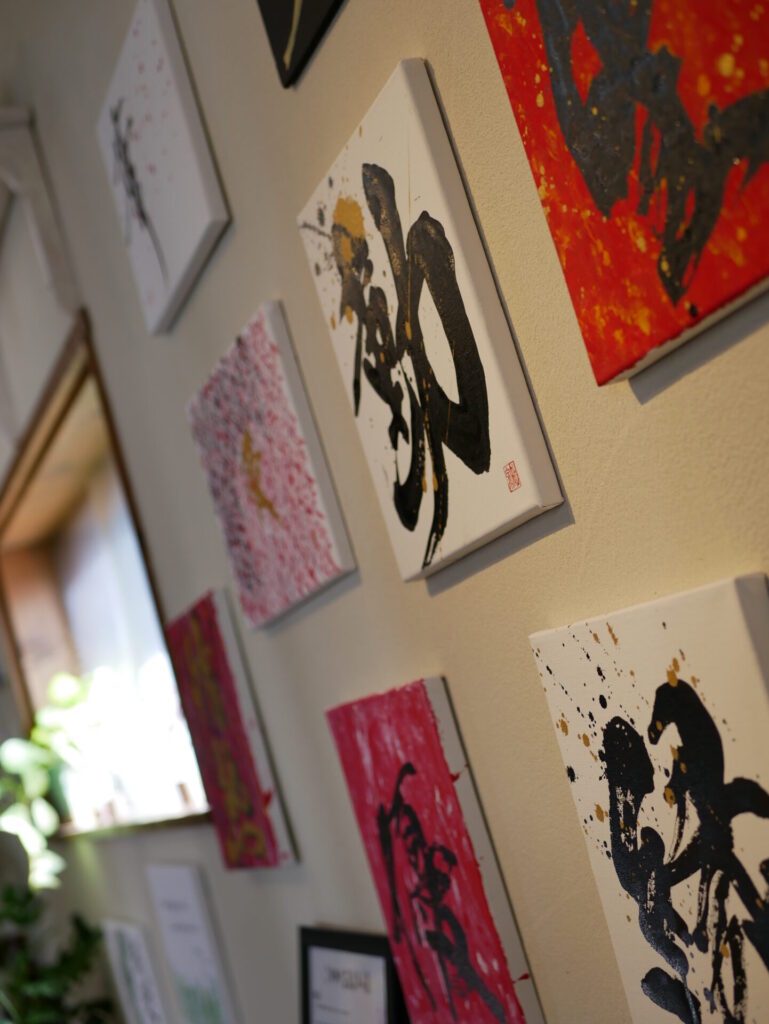 1980年佐賀県生まれ。四児の母。幼少より書道を学ぶ。書道歴30年以上。2016年よりWハートK&M(行橋市)、行橋市男女共同参画センター、九州電力等で美文字講座を開催中。その他、文字デザイン、イベント出店、書道パフォーマンス、地域学校の書写サポーター、etc...活動は多岐にわたる。近年は創作活動にも力を入れ、各所にて個展の開催も行っている。
